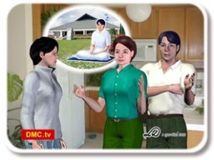 后来妈妈认识了一位善知识 接引妈妈到法身寺来修功德 不过当时家人都反对 使她不是很顺利的来法身寺修功德 后来妈妈劝每个孩子修功德 刚开始我们不喜欢 直到有机会到“啪哪湾”,清迈府那边打坐 下山后,我的行为有所改善了 有些人认为法身寺很会洗脑 其实不只是洗脑 但是换整个头了 我的女朋友到“啪哪湾”打坐就开始了解我 并且更了解法身寺了。