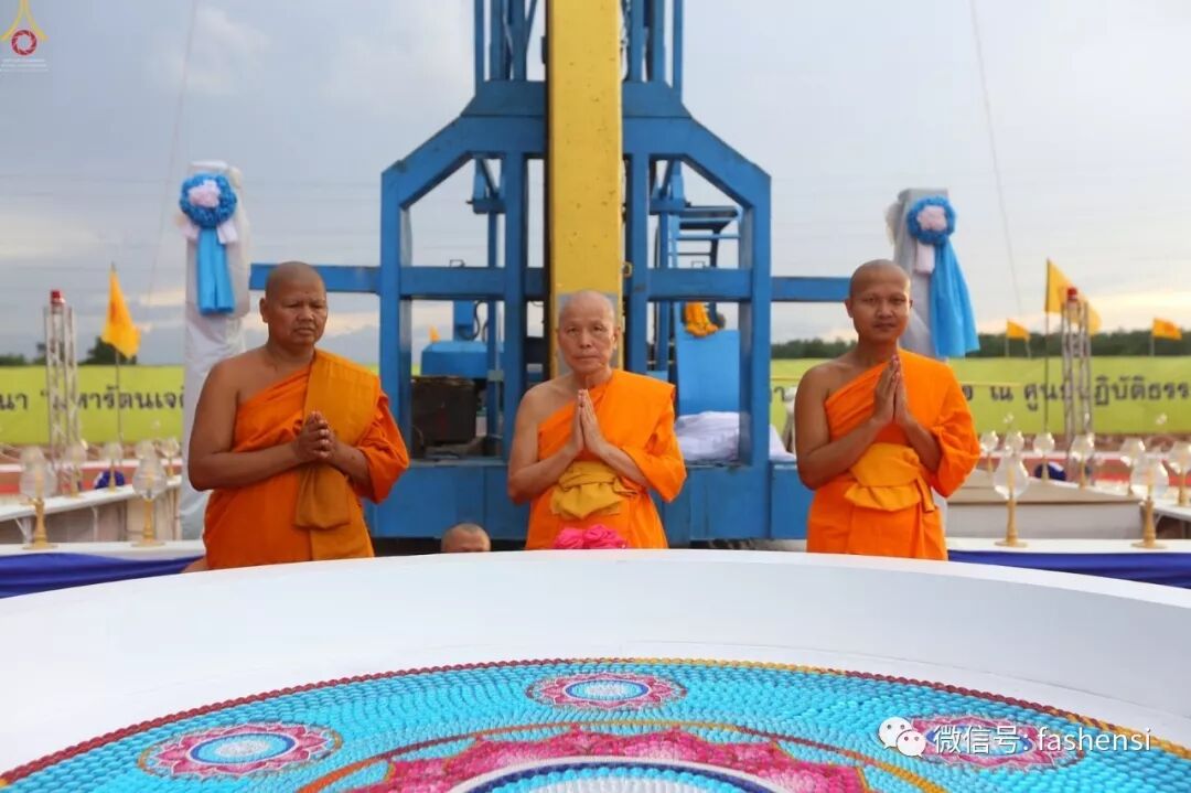 功德主代表亲自启动打桩按钮,让主柱慢慢的打入地下,这也象征着佛法将永驻大地,与世长存。